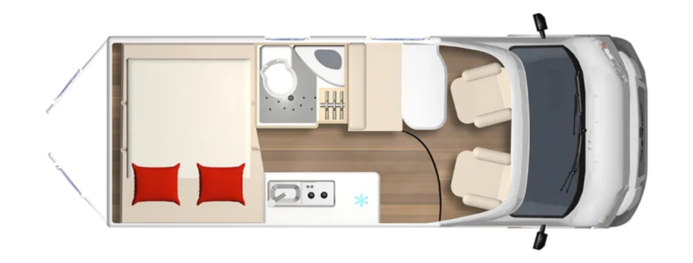 • Pilotensitze und zweier Sitzbank mit variablem Tisch.